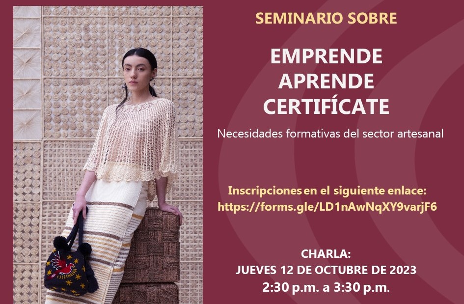 Para suplir las necesidades del sector artesanal, Artesanías de Colombia y el Servicio de Aprendizaje Sena convocan a la reunión virtual titulada “Seminario de Sensibilización Emprende, Aprende y Certifícate”, que tendrá lugar el jueves 12 de octubre.