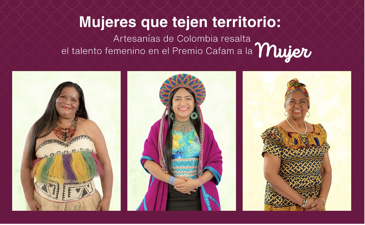 Este año, el Premio Cafam a la Mujer celebra su edición número 37, consolidándose como uno de los reconocimientos de responsabilidad social más importantes del país. Este galardón honra a mujeres líderes que, a través de sus obras sociales, han generado transformaciones significativas en beneficio de la familia, la comunidad y sus territorios. En esta edición, Artesanías de Colombia participó activamente en el proceso de postulación y acompañamiento de tres destacadas artesanas que hoy llegan a la gala de premiación representando a sus departamentos, demostrando cómo el liderazgo femenino impulsa procesos de desarrollo social, cultural y económico en diferentes regiones del país. Alcira Morales González – Mujer Cafam Guainía A través del proyecto “Sembrando Futuro”, promueve procesos de alfabetización, tejido tradicional, empoderamiento femenino y cuidado ambiental mediante acciones de reforestación y protección de nacimientos de agua. Su liderazgo beneficia a más de 800 familias multiétnicas del Guainía, fortaleciendo la identidad indígena, la resolución pacífica de conflictos y la participación comunitaria. Adriana Vanessa Tisoy Tandioy – Mujer Cafam Putumayo Su trabajo impulsa el fortalecimiento de la identidad cultural, el diálogo intergeneracional y el buen vivir, impactando cada año a cerca de 3.000 niños, niñas, mujeres jóvenes y familias indígenas del Putumayo. Cleotilde Henry Valbuena – Mujer Cafam San Andrés, Providencia y Santa Catalina Su labor fomenta la hospitalidad tradicional y el arraigo territorial, generando ingresos dignos y preservando los saberes ancestrales de más de 52 familias raizales. Su trabajo ha sido reconocido por el Ministerio de Cultura de Colombia como vigía del patrimonio y por la UNESCO por su aporte a la protección cultural. Con estas postulaciones, Artesanías de Colombia reafirma su compromiso con el reconocimiento del talento, el liderazgo y el impacto social de las mujeres artesanas del país. Sus historias demuestran que la artesanía no solo preserva tradiciones, sino que también impulsa procesos de transformación social, fortalecimiento cultural y desarrollo territorial. En este Día Internacional de la Mujer, celebramos a quienes, con sus manos y su liderazgo, siguen tejiendo futuro para Colombia.Mujeres que lideran desde el territorio