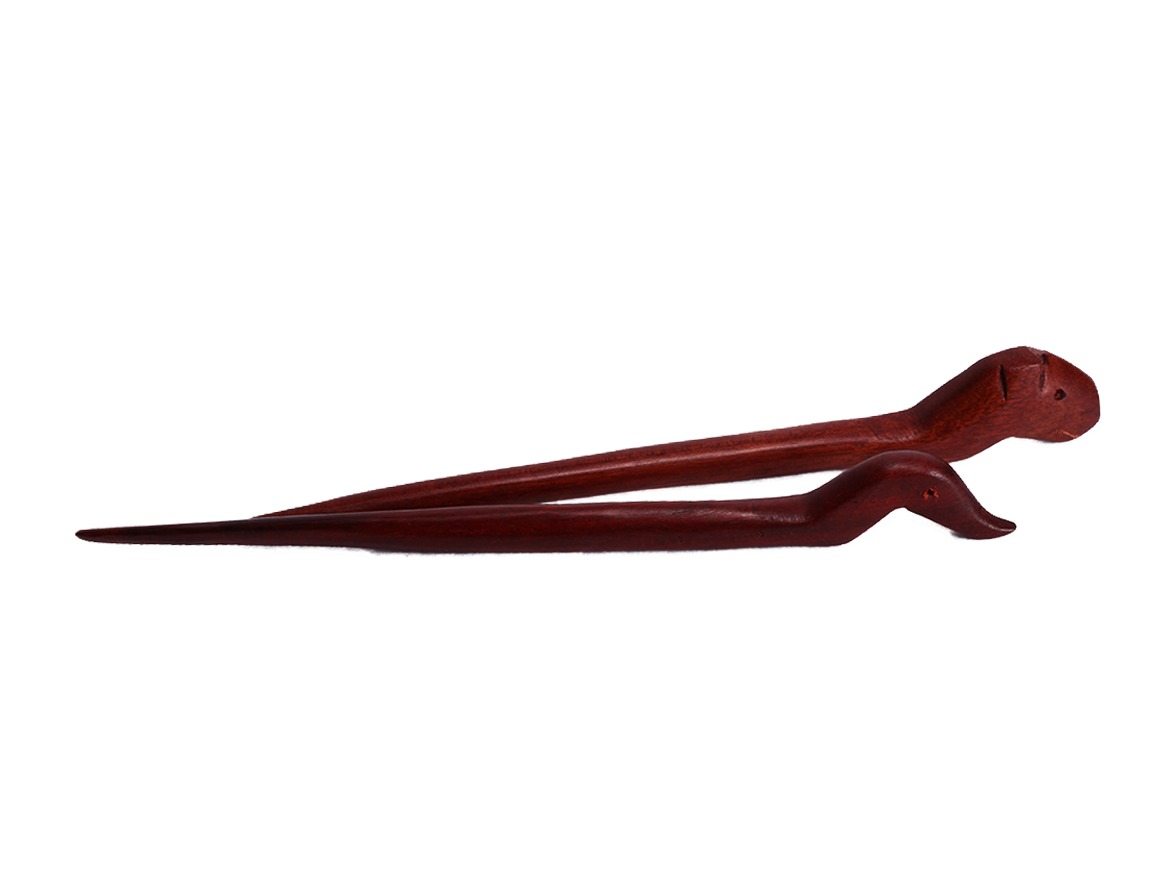 Talla en madera: actividad masculina de tradición ancestral. Los hombres utilizan madera de Granadillo y de Palo de Sangre para elaborar remos, canoas, objetos domésticos y figuras de animales. La talla de manatíes, dantas, armadillos y delfines ilustra la rica biodiversidad de su entorno.