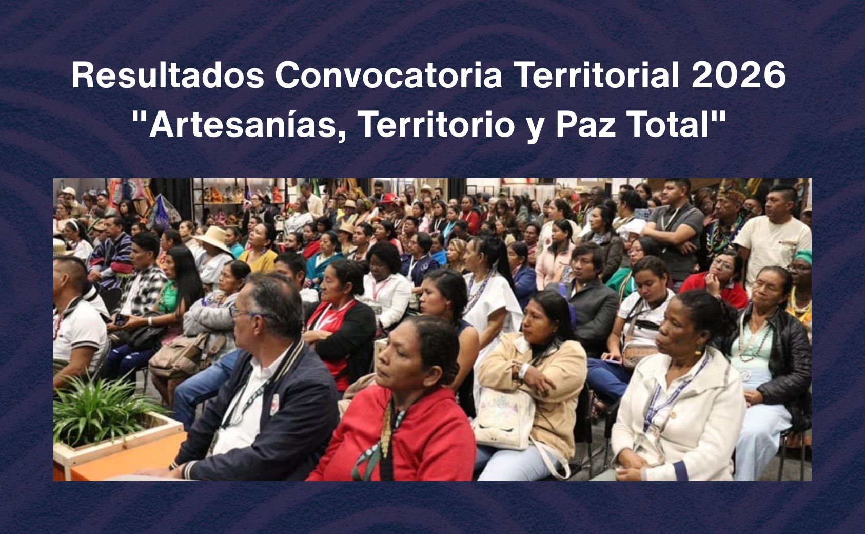 Artesanías de Colombia S.A.-BIC informa a la comunidad artesanal del país los resultados de la Convocatoria Territorial 2026 “Artesanías, Territorio y Paz Total”, una iniciativa que busca fortalecer las capacidades productivas, técnicas y comerciales de artesanas y artesanos en los diferentes territorios del país.