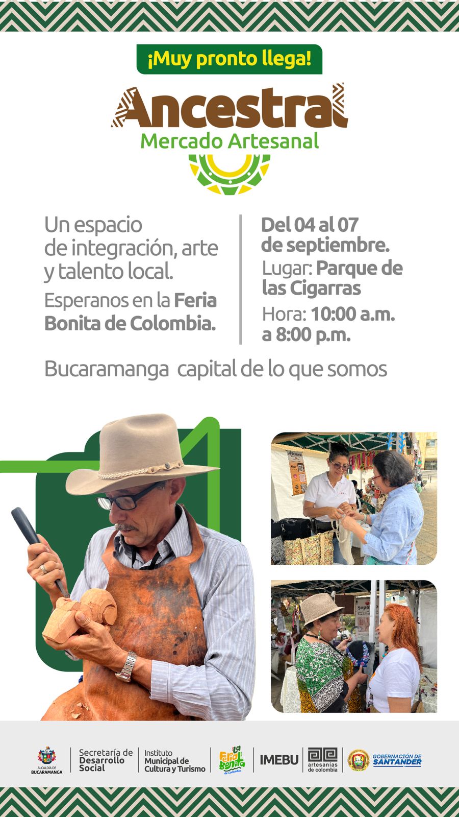 En el marco de la Feria Bonita 2025, Bucaramanga vivirá un espacio de integración, arte y tradición con la llegada de Ancestral: Mercado Artesanal, una vitrina que reúne el talento de 72 artesanos, entre los cuales 30 representan con orgullo diferentes provincias del departamento, vinculados a los procesos de los Laboratorios de Gestión Social, Codiseño, Innovación y Creatividad de Santander.