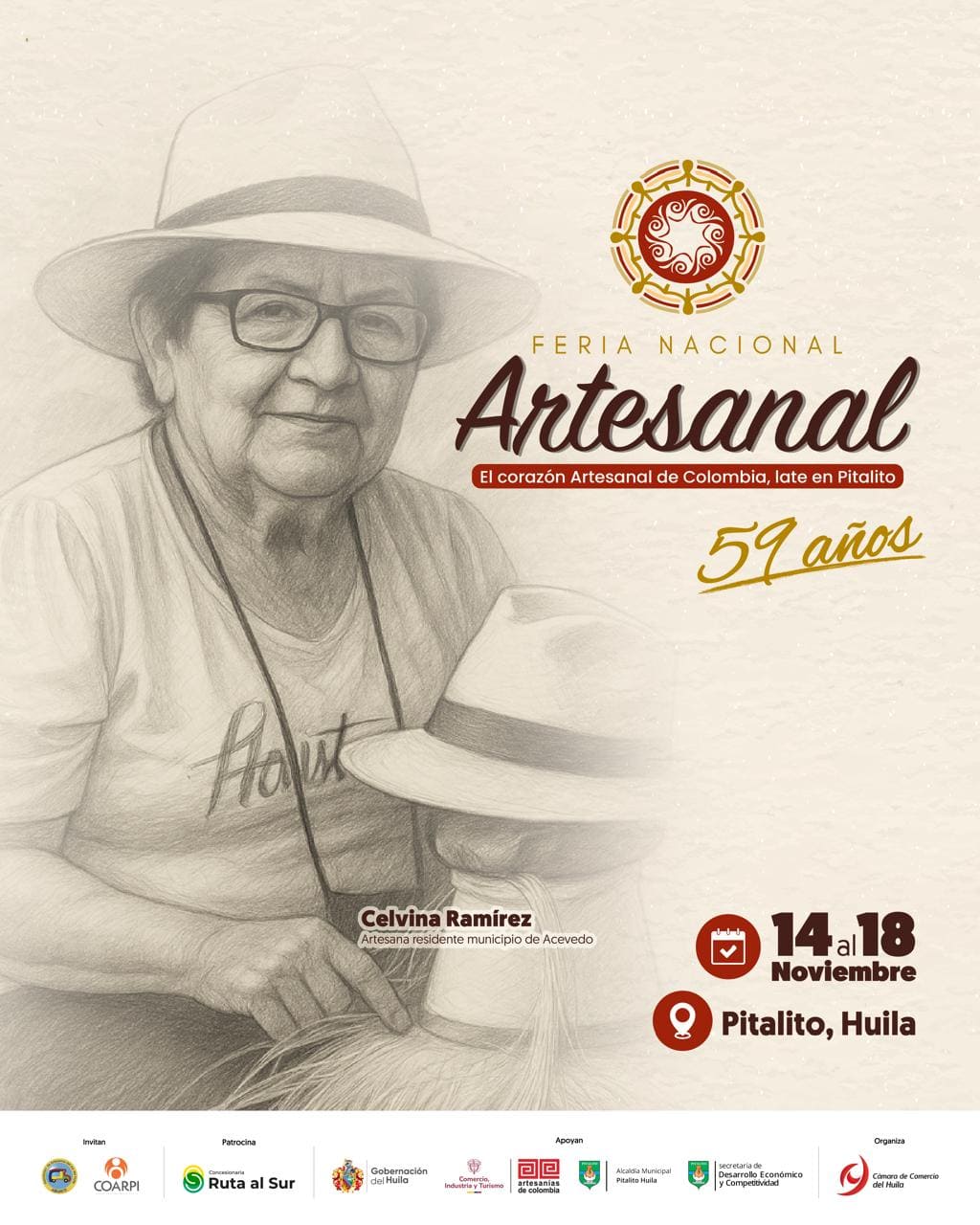 Se llevará a cabo la versión número 59 de la Feria Nacional Artesanal de Pitalito, bajo el lema “El corazón artesanal de Colombia late en Pitalito”. Este evento es uno de los escenarios feriales más representativos del sur del país, donde confluyen expresiones artesanales locales, regionales y nacionales.