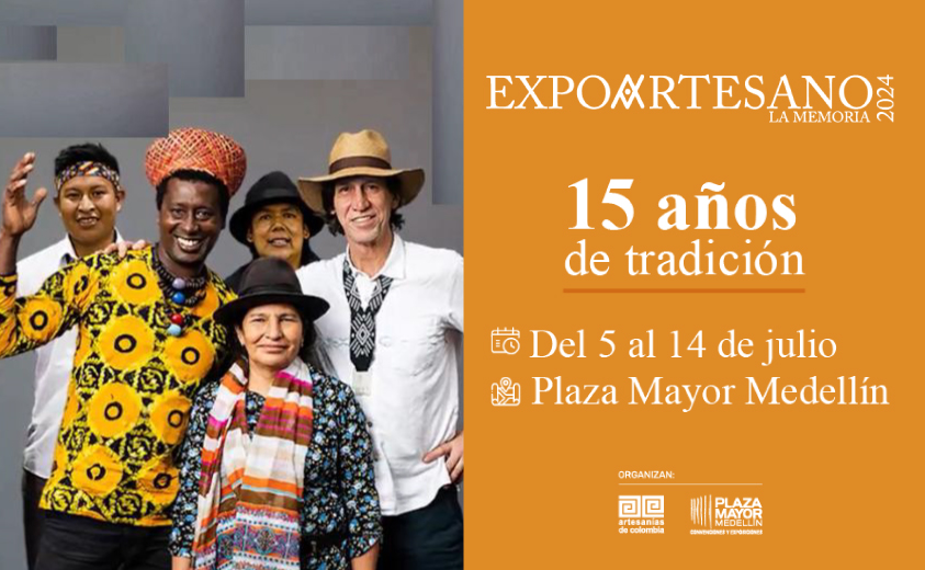 Artesanías de Colombia y Plaza Mayor Medellín invitan a las personas artesanas, productores de bocado típico y cocina, instituciones, empresas y proyectos especiales que apoyen el fortalecimiento del sector artesanal con cobertura municipal, regional y/o nacional a postularse a la edición número 15 de Expoartesano - La Memoria 2024.