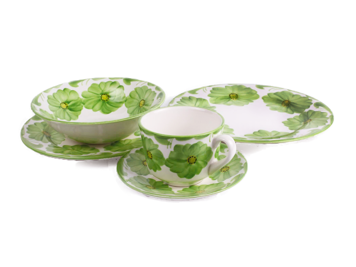 En el caso específico de la mayoral verde, esta es una variación de la mayoral café original, los trazos ágiles y grandes de esta flor fueron ejecutados por una de las artesanas de la fábrica La Continental con el fin de ocupar más espacio en el plato.
